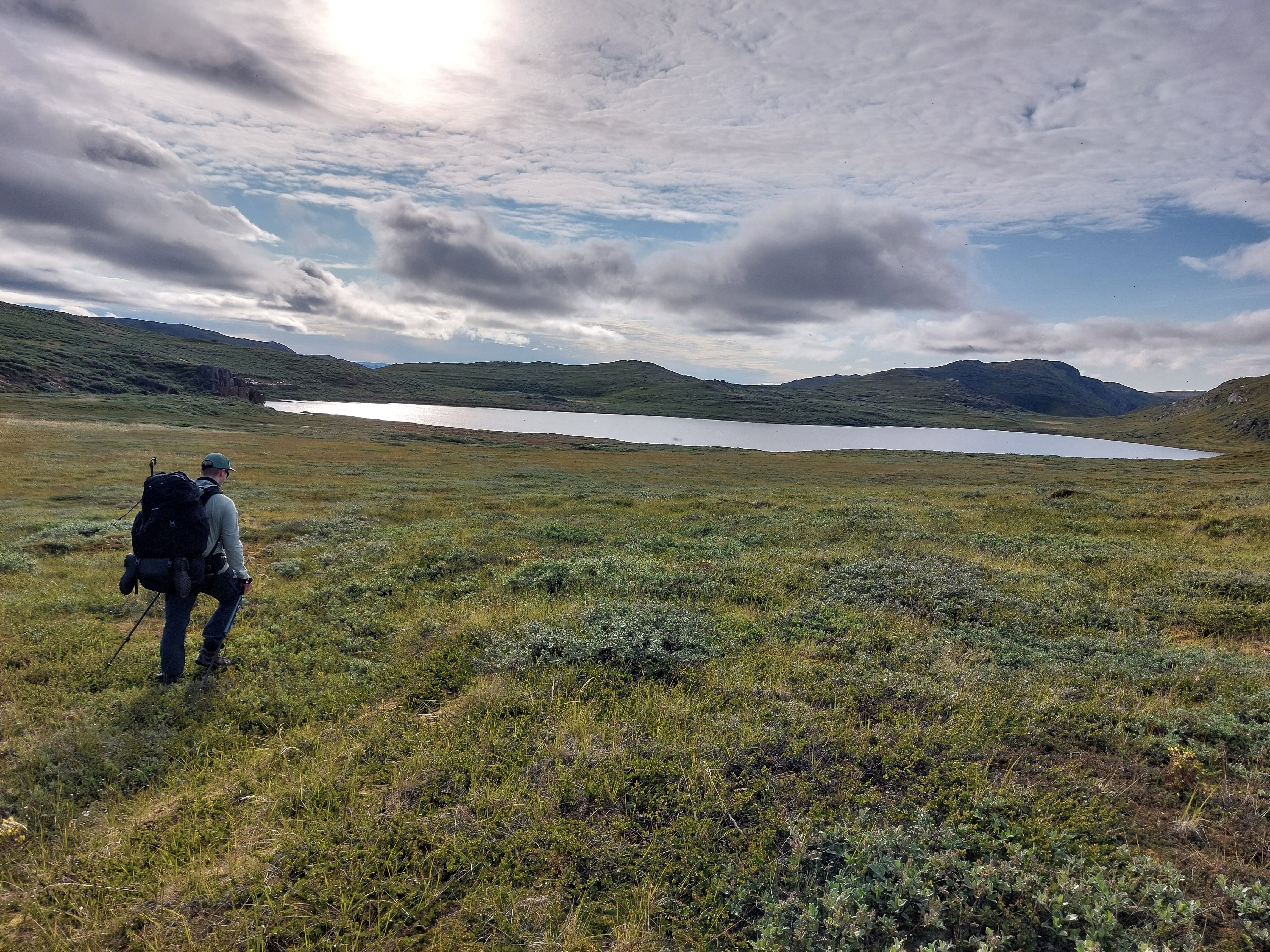 Hiking over tundra to sample lakes