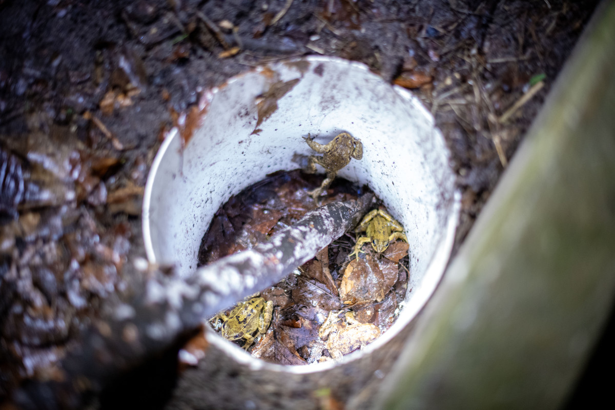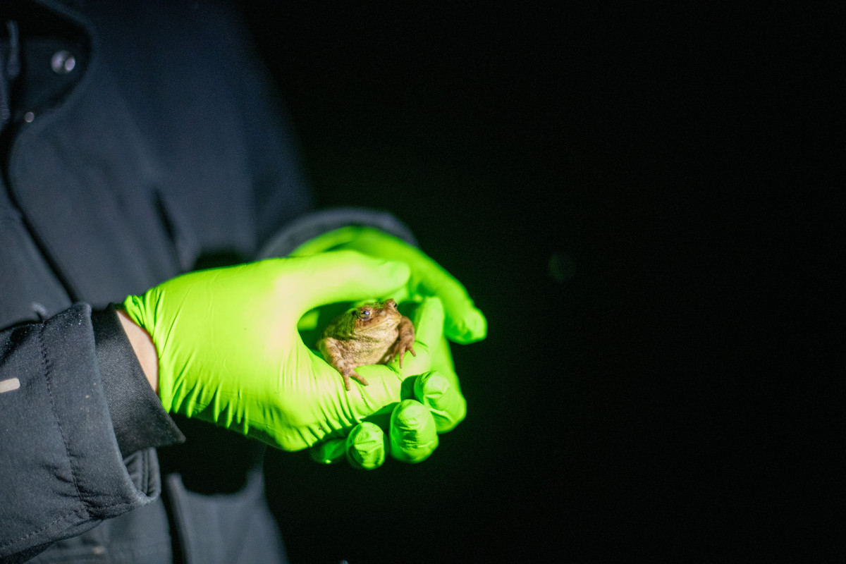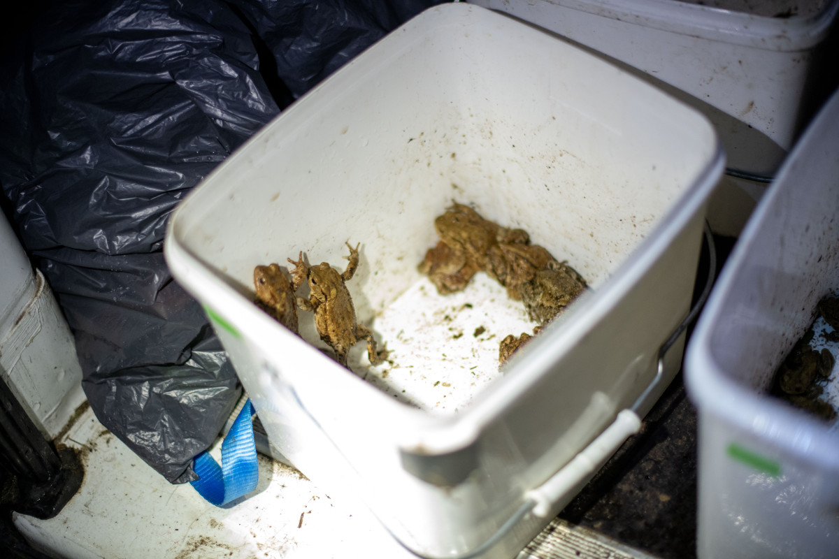 “Het is echt heel goed kijken waar je loopt”, waarschuwt Maaike van der Zanden terwijl ze de weg wijst naar haar onderzoeksplek. “Dit is echt een hotspot, en padden volgen ook dit soort wandelpaden”. Haar studenten zijn net klaar met de eerste ronde experimenten. Ze werken nog tot iets na middernacht door om genoeg padden te bestuderen.
